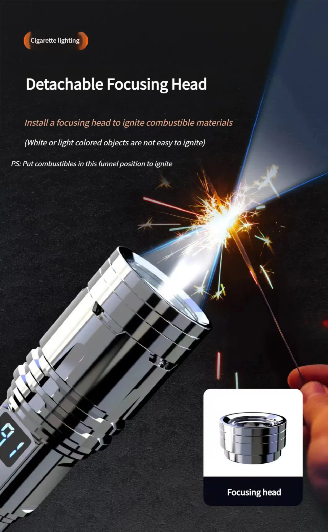 - Telescopic zoom: Free switching between spotlight and floodlight.